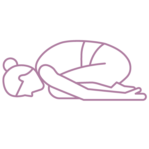 Le Garbhasana détend la colonne vertébrale, la nuque et étire les muscles du dos. Dans cette position, les genoux sont pliés et le front est légèrement posé sur le sol, tandis que les bras sont détendus sur les côtés.